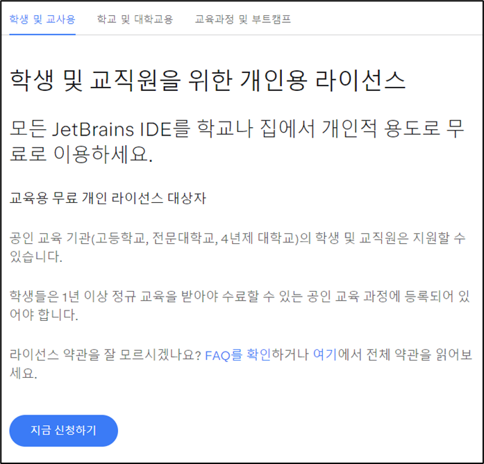 IntelliJ Ultimate 교육용 라이선스 지원 받기