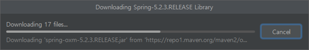 15. Spring MVC 환경에 필요한 jar 파일들을 다운로드하는 창이 뜹니다.