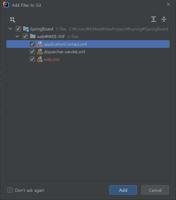 16. 뭔가 파일들이 추가됐나 봅니다. Add 할 건지 물어보는 창이 뜨는데, Add 버튼을 클릭해주세요.
