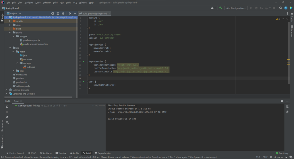 Spring MVC gradle 시작을 위해 IntelliJ 개발 환경을 구축해 봅시다.